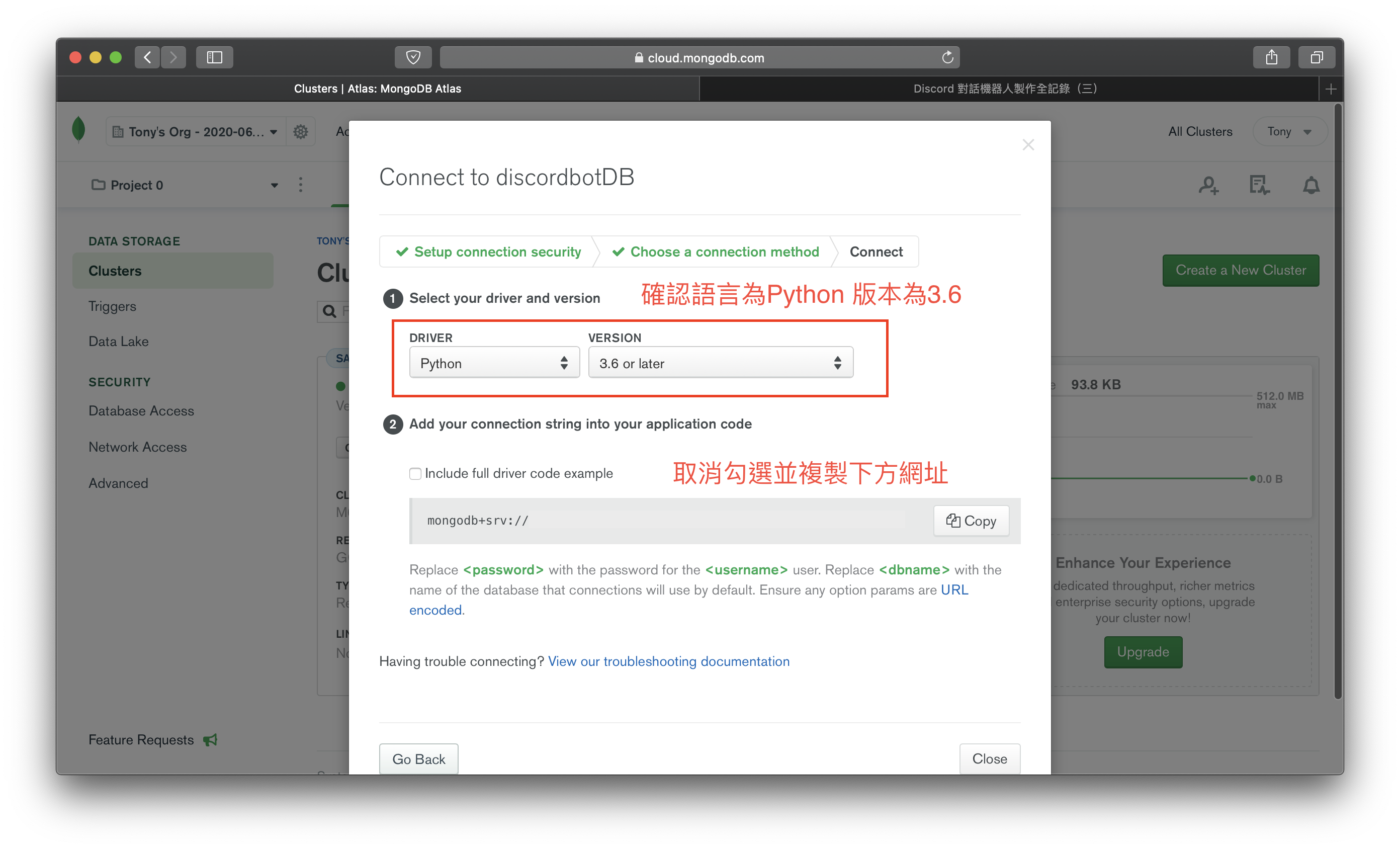 將 mongodb+srv://<url> 記起來等等會用到