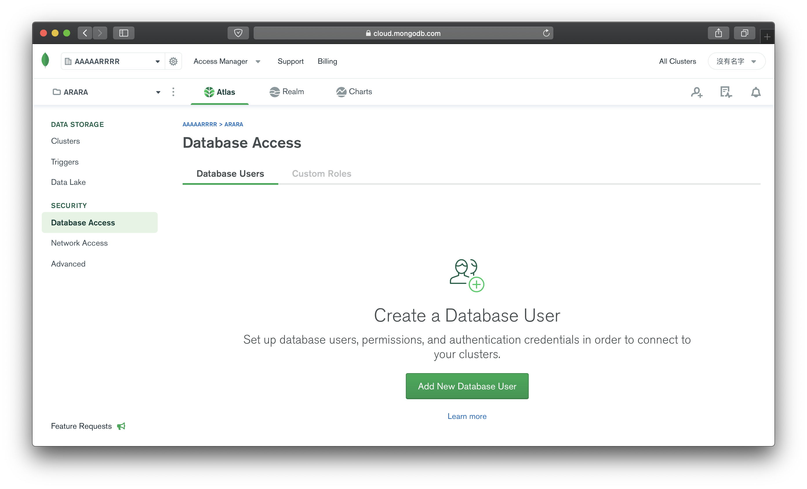 點選左側選單中的 Database Access ,點選 Add New Database User ,設定使用者帳號密碼