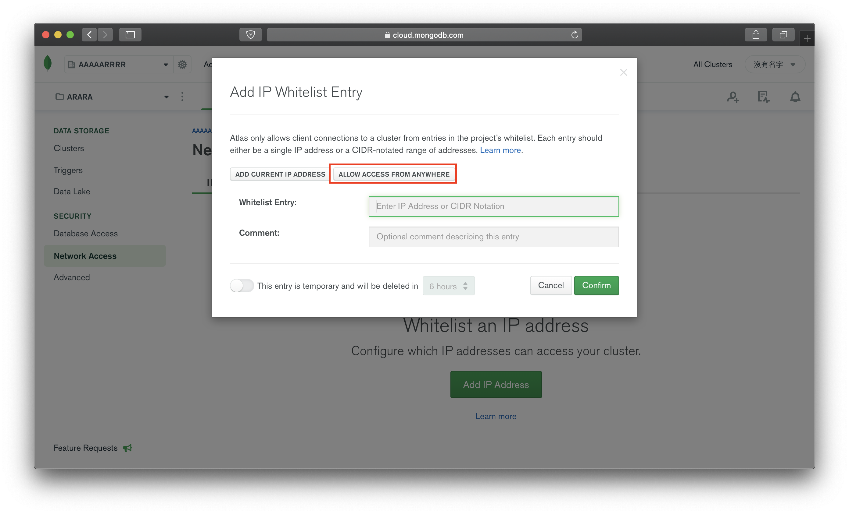 點選 ALLOW ACCESS FROM ANYWHERE 後,按下 Confirm